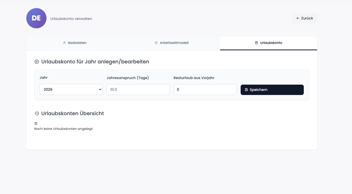 Diese Einstellung findet ihr bei der Anlage der Benutzer. Dort könnt Ihr dem Benutzer direkt seine Urlaubstage und ggf. den Resturlaub des Vorjahres eintragen.