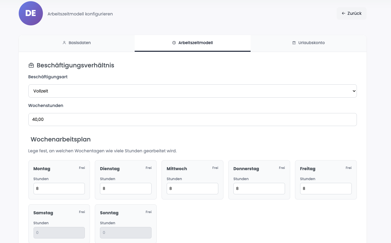 Welches Arbeitszeitmodell hat Dein Mitarbeiter? Vollzeit, Halbtags oder vielleicht doch Minijob? Dementsprechend kannst Du an dieser Stelle: